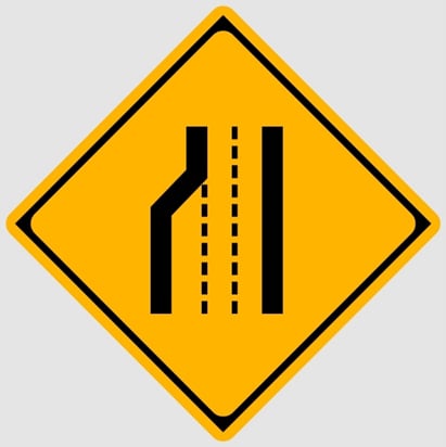 したがって、ドライバーは幅員の変化を事前に認識し、減速・進路変更などの適切な対応を行うことが求められます。